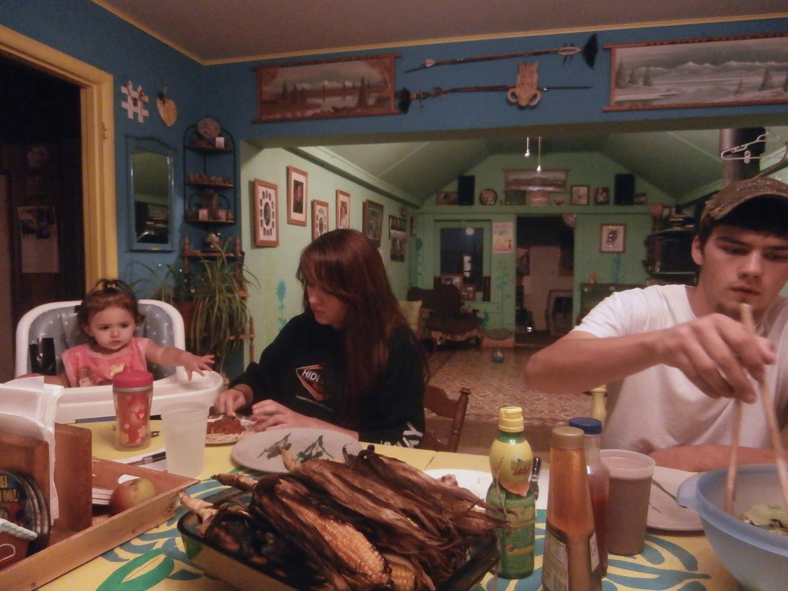 My oldest son is an excellent fisherman, and caught a couple big salmon, so we had a tiny portion of his catch with more friends and family and a fresh garden salad.